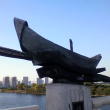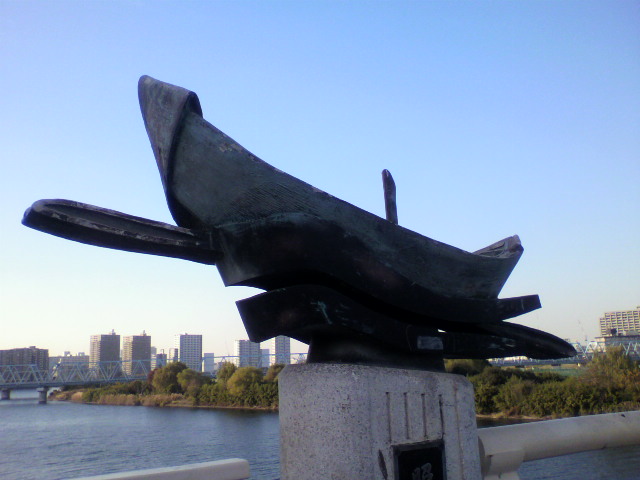 かつて旧東海道、六郷の渡しがあった場所に、六郷橋がかかっています。欄干には、かつての渡し船のモニュメントがあり、ちょっとかっこいい!