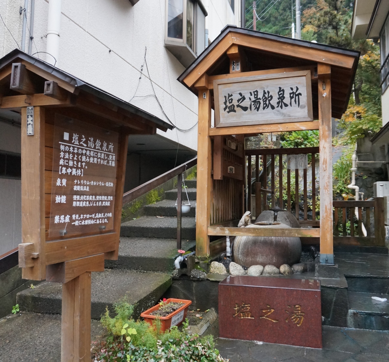 塩之湯飲泉所は温泉街の中程にあります、四万郵便局前の反対側です。