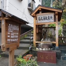 東屋風の屋根がある綺麗な施設です、ひょうたん型のつくばいの上下二ヶ所に温泉がでています。