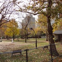 12月初旬の「日比谷公園 草地広場」、前日からの強風もあり、落ち葉が目立ちました。