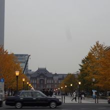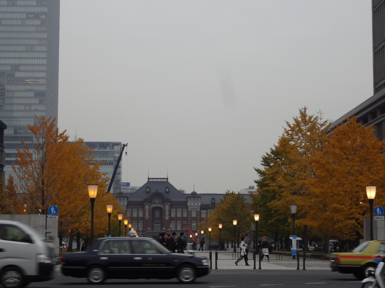 東京駅を背景にまっすぐのビル太い道路、道の両脇に並ぶ電灯とイチョウ並木は、日本の首都の玄関口として充分素晴らしい光景でした。