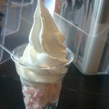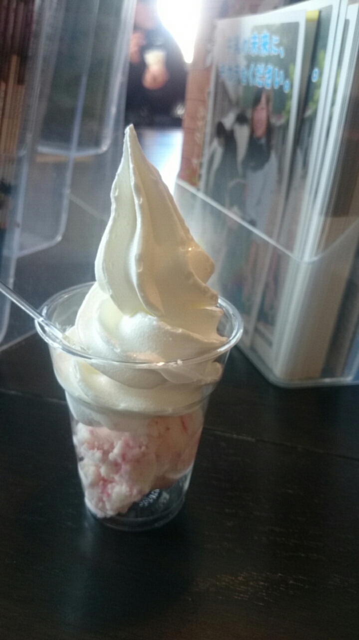 ジェラートを食べに行きましたが、こちらのお店はジェラートの上にソフトクリームを乗せるようです。ジェラートの種類は、私が行ったときは五種類と多くはありませんでしたが、ジェラートの他にもプリンやシュークリーム、パンやクッキーもありました。牛乳飲み放題もありました。ソフトクリームの美味しさにはビックリしました。とてもクリーミーです。