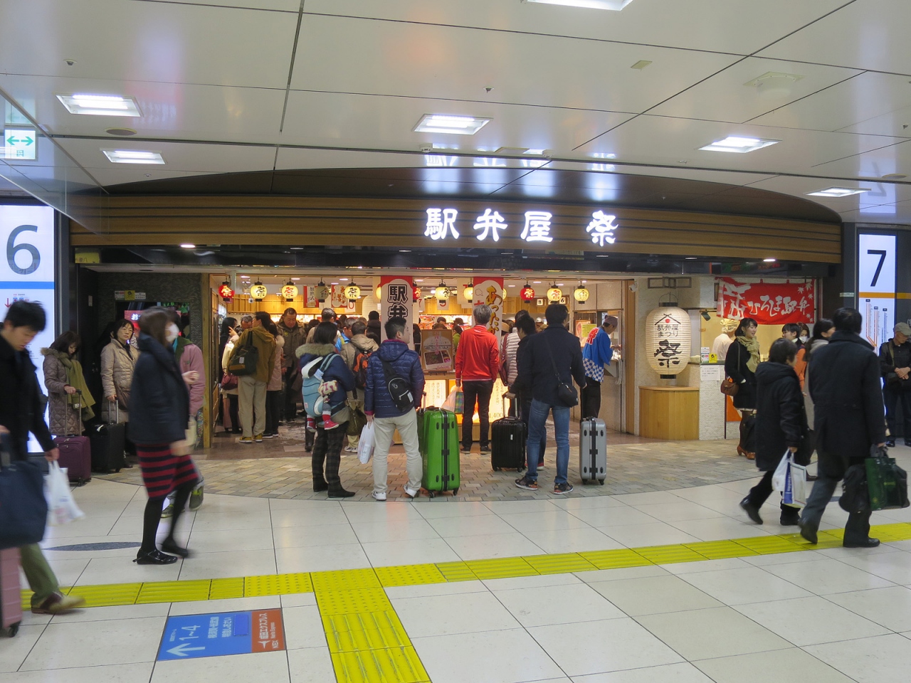 駅で買って車内で食べるはずの駅弁を、街で買って家で食べても良いという文化的土壌を定着させたのは、間違いなく新宿の京王百貨店。1年に1度、1月におこなわれる駅弁大会、楽しみでしたぁ。それが、3~4年前かなぁ、この「駅弁屋祭」がオープンして、駅弁を恒常的に楽しめるようになってしまいました。世はデフレの時代、旅に出ずとも気分だけ味わえるという経済的背景も味方したのでしょう。経営は日本レストラン、言わずと知れた旧日本食堂ですから、東京駅中央通路なんていう超一等地に開店し、そのネットワークを生かして日本全国から駅弁をかき集めることもできるのですね。店内右手前と左奥にはライブキッチンがあり、作り立てのお弁当も買うことができるというイベント性も駅弁大会を想起させます。今まで前を通るたびに吸い寄せられ、必ず何か1つ…時々2つ以上買ってしまっていましたが、今回は素通りすることができました。成長した自分自身を褒めてあげたい(笑)。