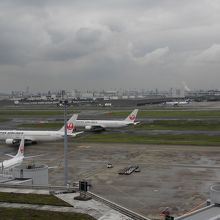羽田はターミナルが3つに別れており、各ターミナルの展望デッキがあります。第一ターミナルは国内線なので、当然見える機材はJAL機がほとんどとなります。