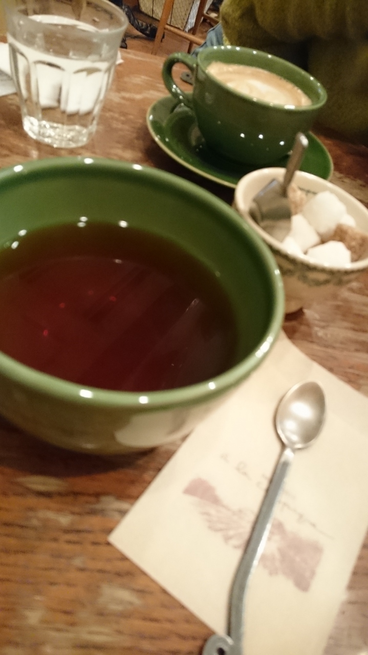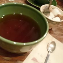 ベリー系のハーブティーは大きなカフェオレボールに入って来ました。