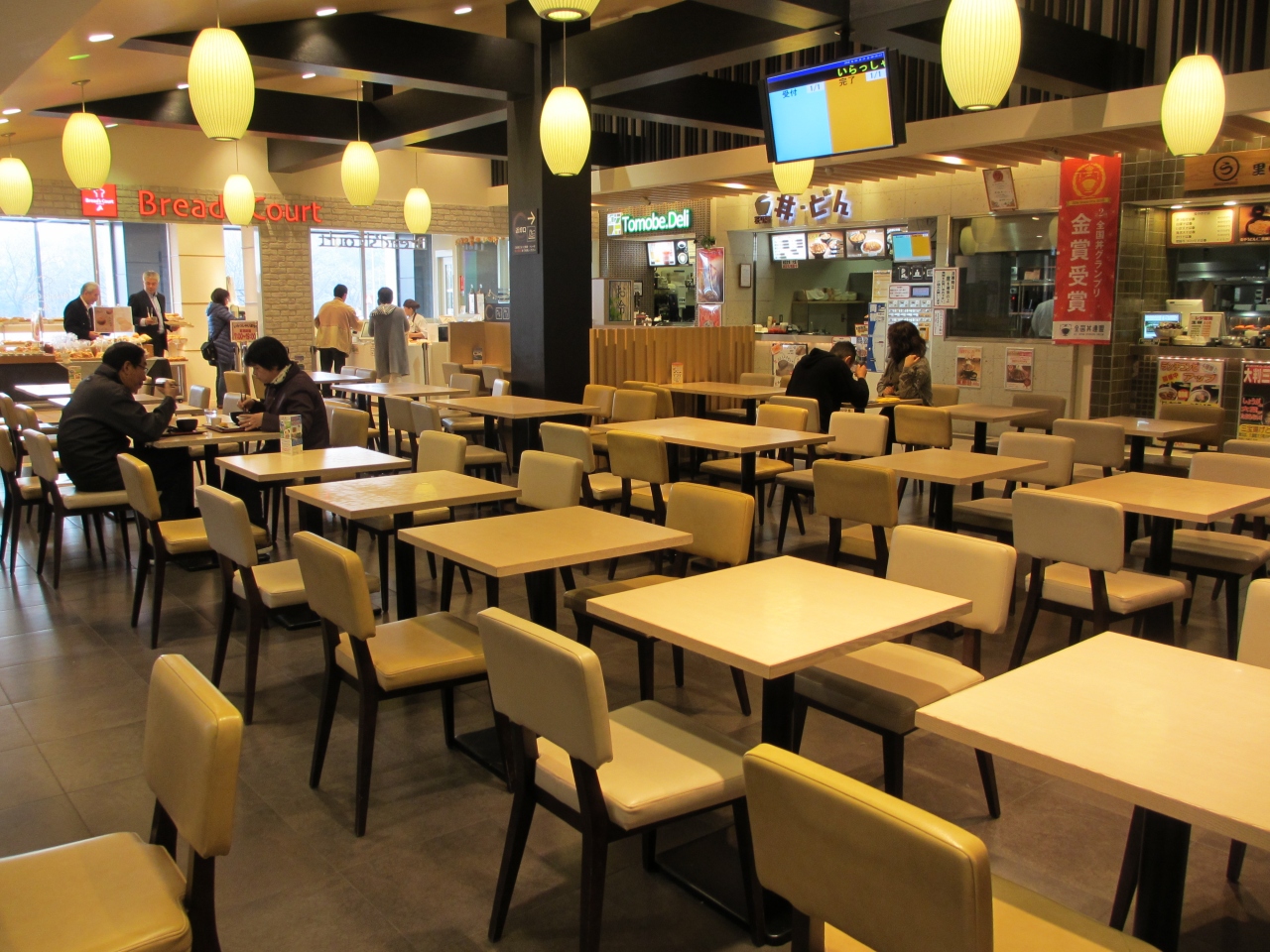 常磐自動車道・三郷から72kmほどの所にあるサービスエリアです。首都高から乗ると100km前後の所にあるので休憩場所として最適です。建物内部の中央には石をちりばめた観賞用の中庭があり、疲れを取り除いてくれます。訪れた時は梅まつりの最中だったこともあり中庭には梅の鉢が置かれ、梅がきれいに咲いていました。フードコートにはファーストフード店だけでなく、蕎麦の専門店も入っています。