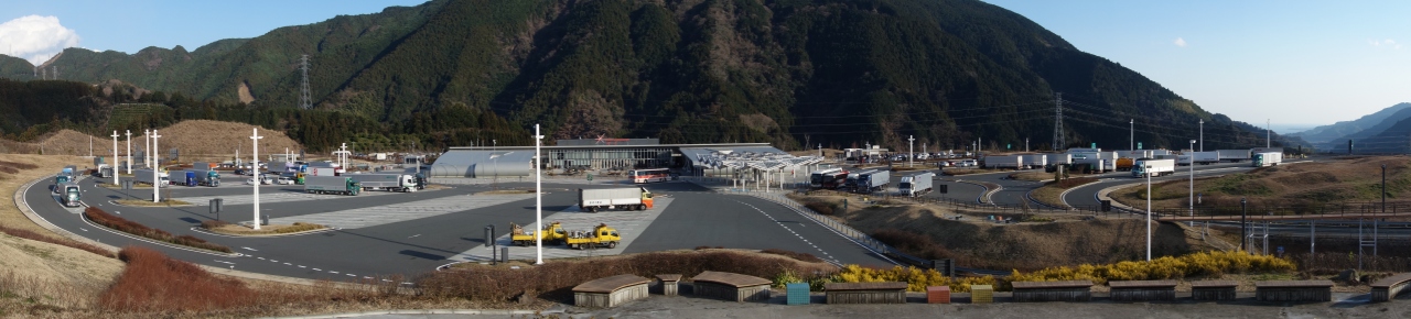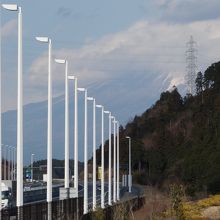 ひろびろとしたサービスエリアです。富士山が見える展望台が構内にあります。でも,ちょっと歩かなくてはなりません。そこにのぼると,富士山が見えることにはなっているのですが,山と高速道路にはさまれた景色で,それほど開放感はありません。