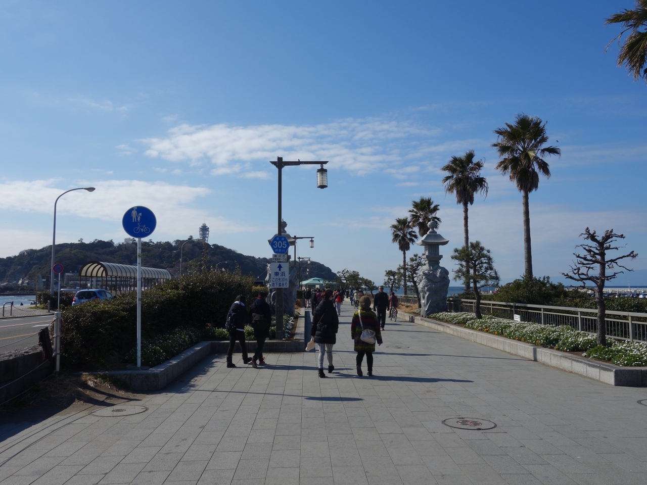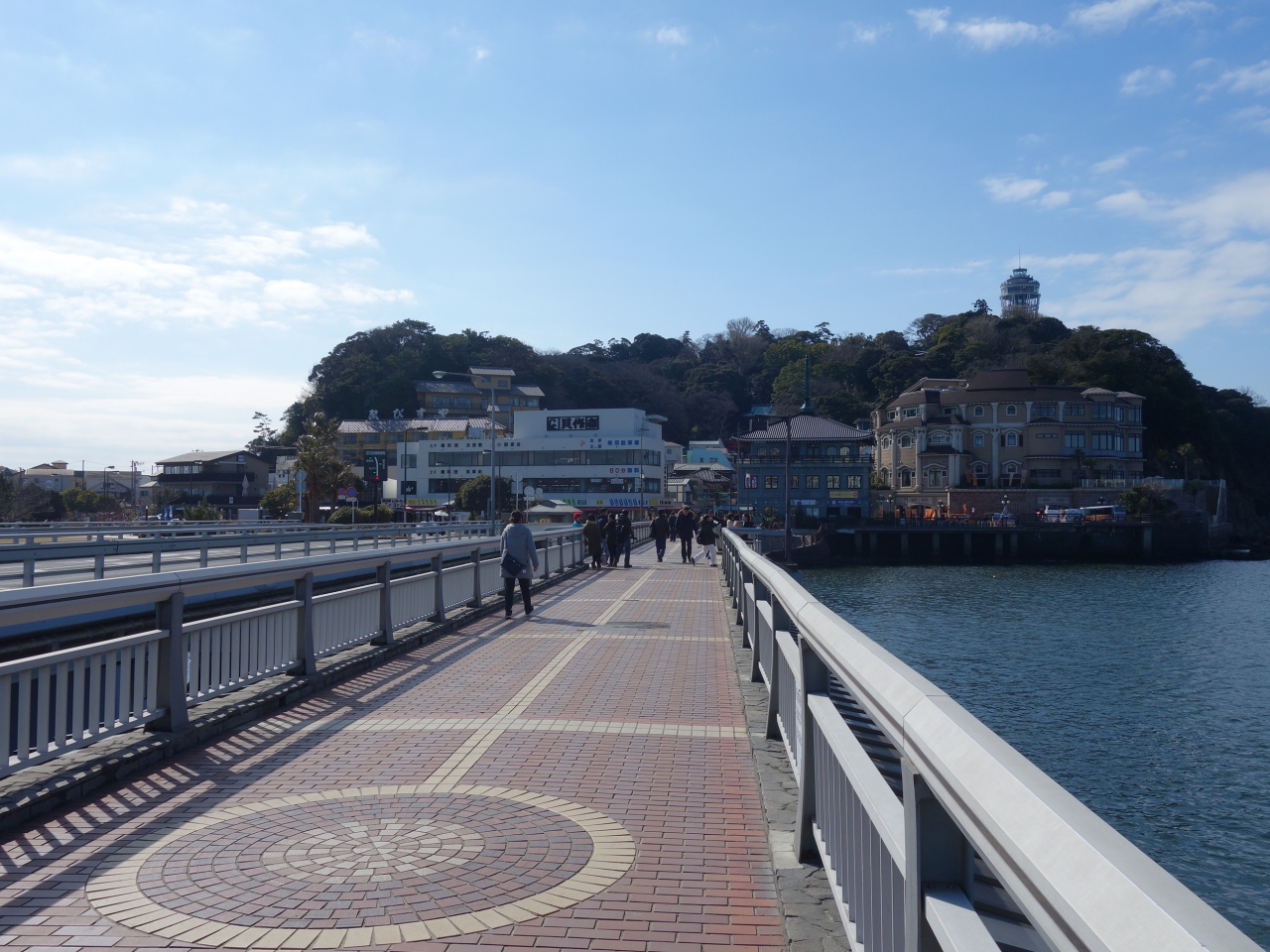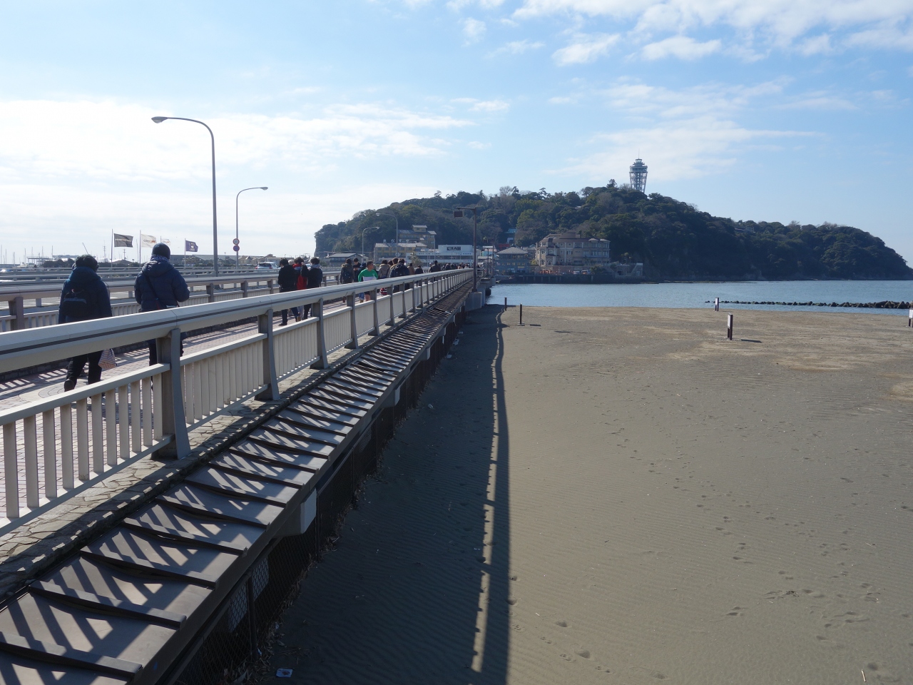 江ノ島弁天橋は「本土」から江ノ島へ渡る橋です。はじめてこの橋ができたのが明治24年とのことですので,源頼朝は橋が利用できなかったことになります。車道のほうが「江ノ島大橋」と呼ばれていて,昭和39年の東京オリンピックにあわせてかけられたとのことです。