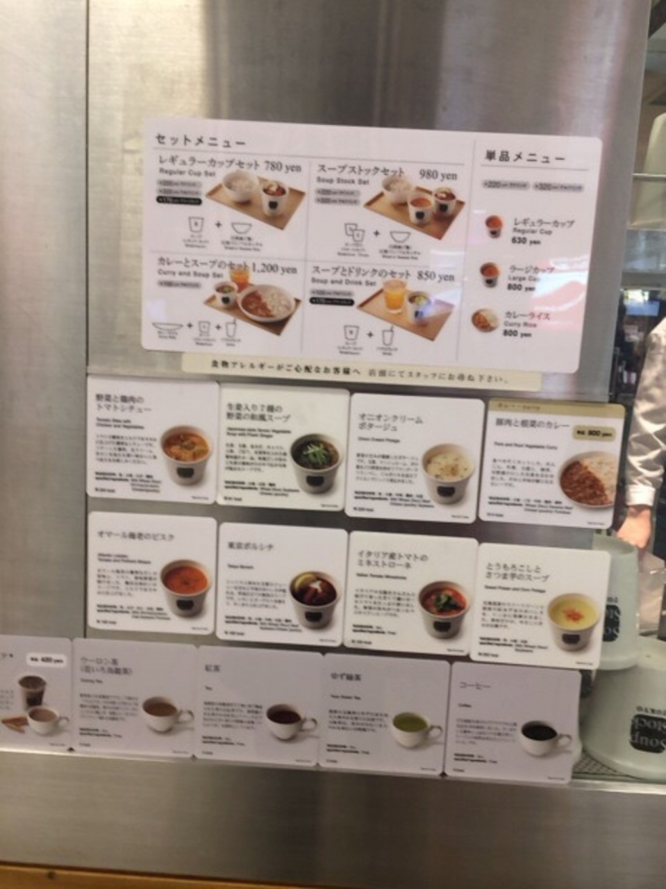 東急二子玉川駅構内にあるスープストックです。改札を出ないで入れるので乗り換えの際に食事したい時などに便利です。
