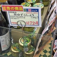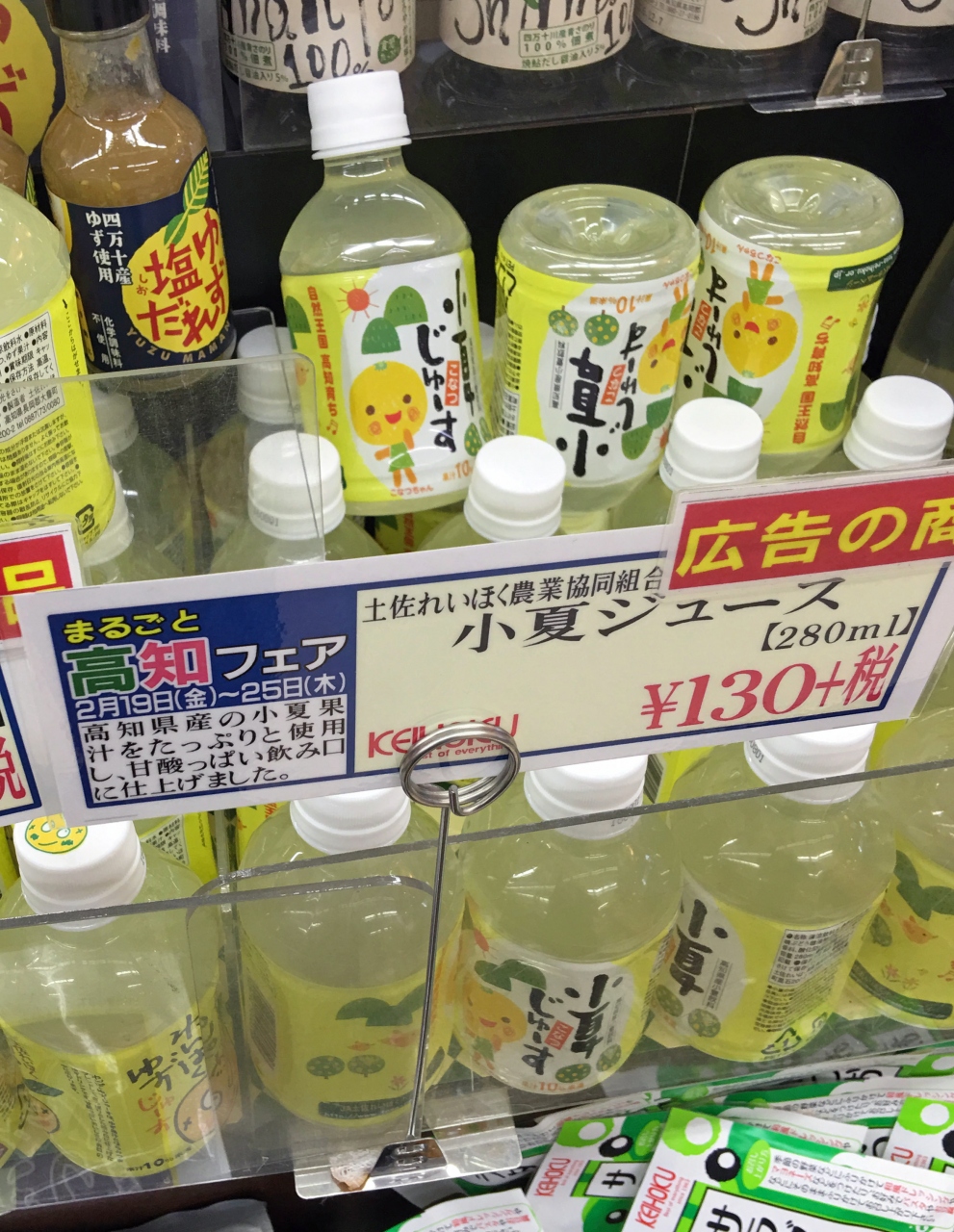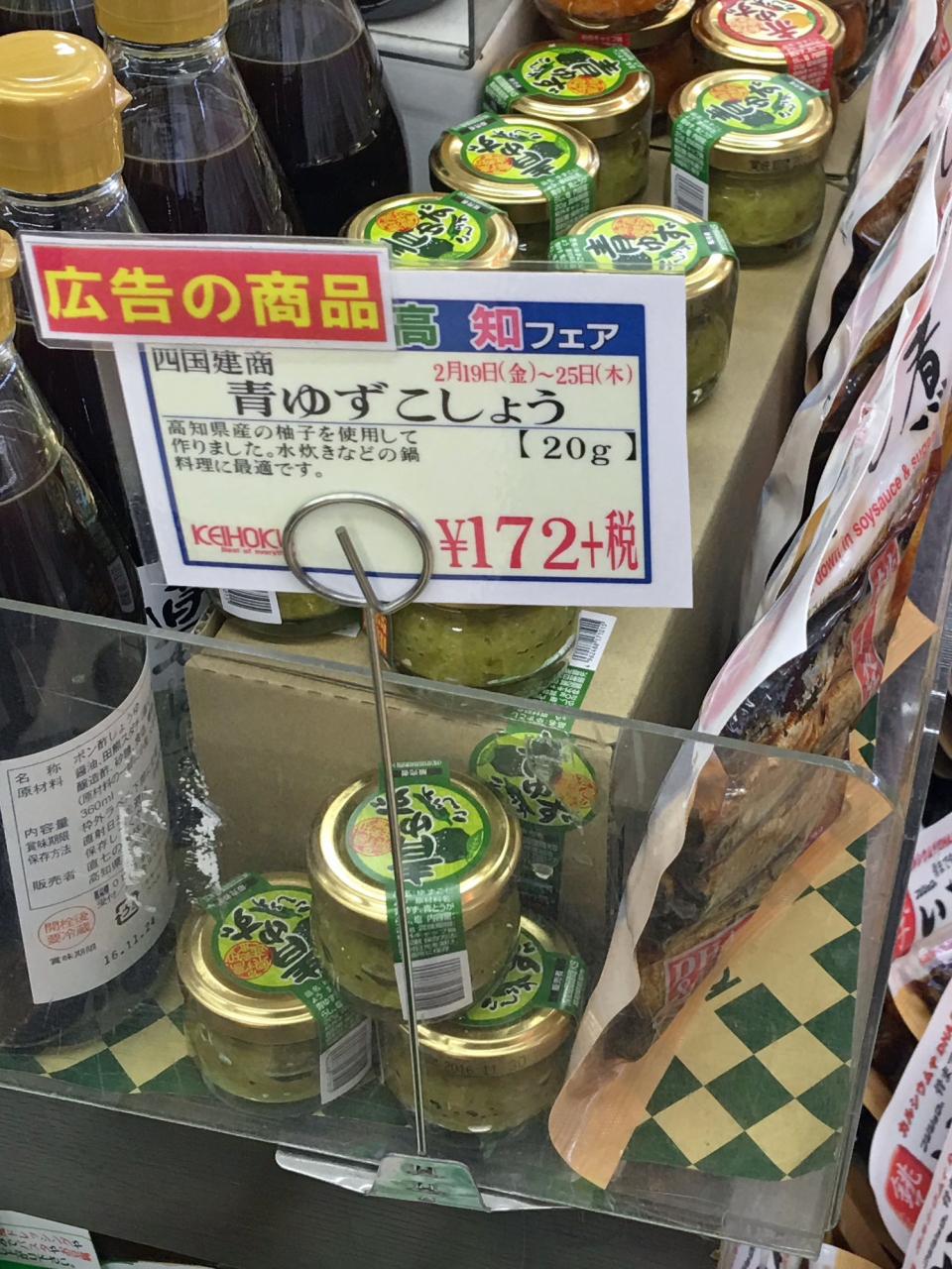 高知県の食材が、各所に置かれていました。柚子胡椒、小夏ジュースなどを購入しました。