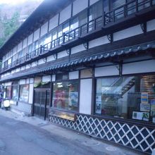 四万温泉の名所である積善館の近くにあるおみやげ屋さんです。長屋のようなつくりの中に和菓子店や土産店が入っています。ネコの置きものやグッズ、可愛らしい小物などの和雑貨がたくさんありました。外国人観光客が喜びそうなお店です。