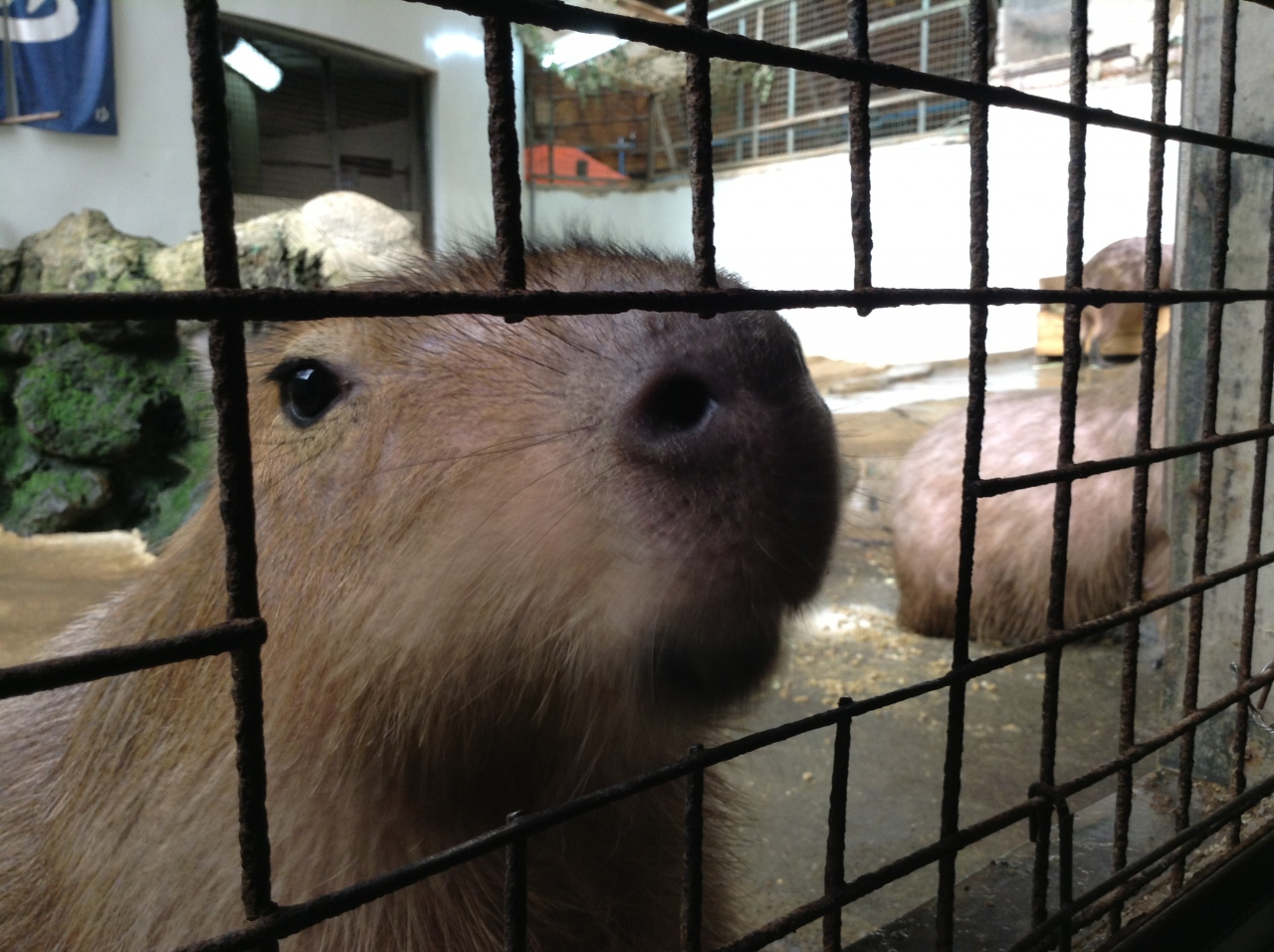 街中の至る所に、「カピバラの赤ちゃんと触れあえる」とあり、行ってみました。