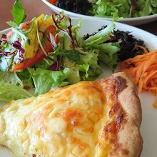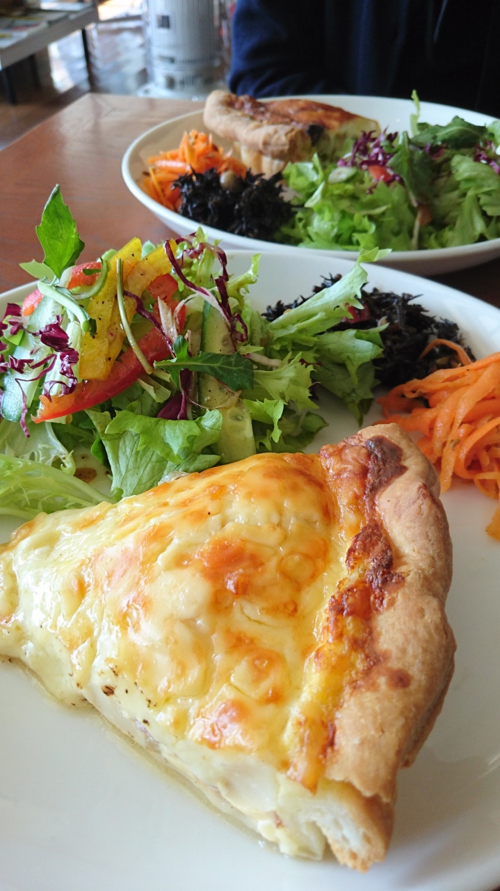 看板メニューのキッシュランチを頂きました。キッシュ、サラダ、デザート、ドリンクで940円。キッシュはとてもボリュームがあり、味も美味しかったです。チーズ多用で少しピザ風です。他のメニューも美味しそうなので、また食べに行きたいです。