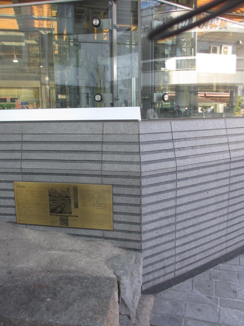 JR有楽町駅の中央口や銀座口をでた前の、地下に降りるきれいで広い階段の裏にあります。石組下水溝が再現されているので、石をベンチにして座っている人がいらっしゃいましたが無事見つけることができました。奉行所がこの地にあったとは、今の姿からは想像もできませんでした。