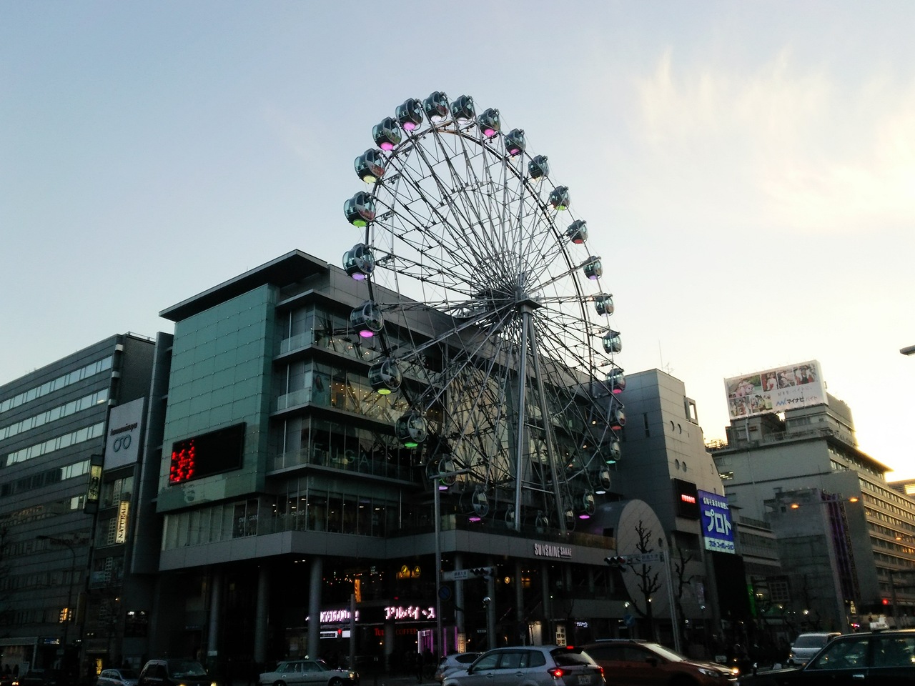 地下鉄栄駅からも地下街でつながっている商業施設(サンシャインサカエ)にある観覧車です。観覧車の乗り場は、この施設の3階にあります。観覧車は大人500円とです。ちょうど期間限定で「BOYS AND MEN」とコラボした観覧車が回っていました。