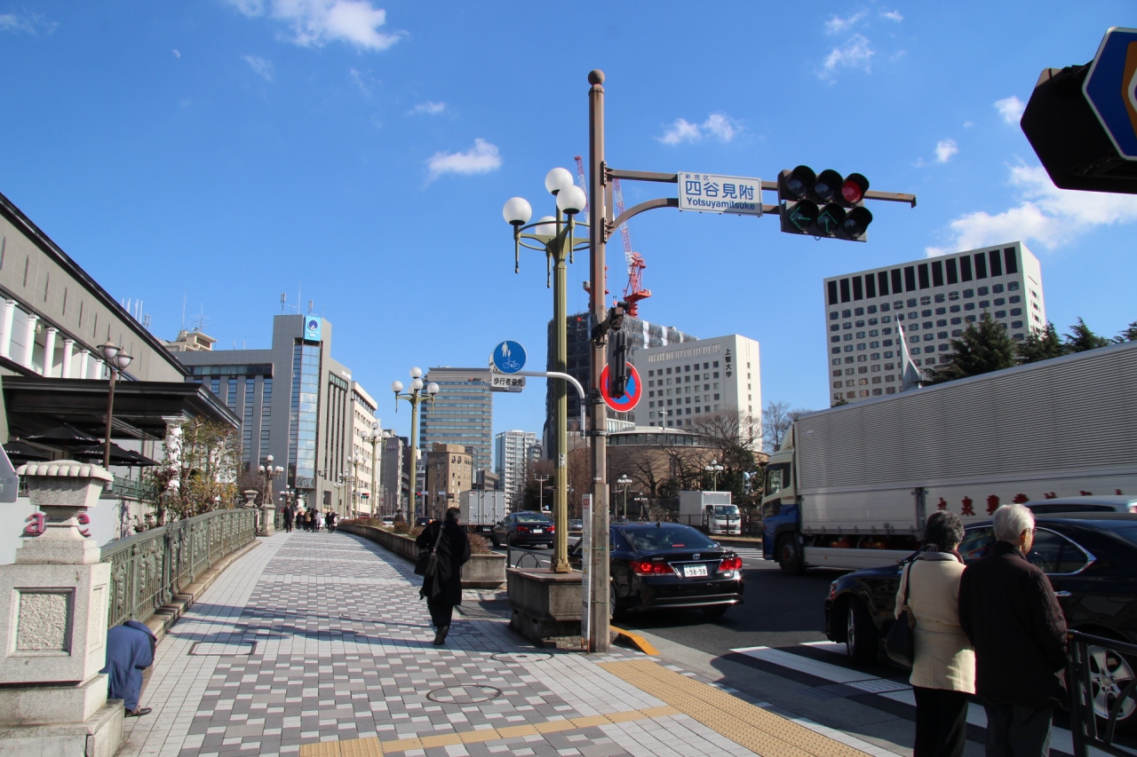 JR四ツ谷駅前のJR中央線を跨ぐ橋です。新宿通りの一部となっていますので半蔵門から新宿方面に車で通れば橋とは気付かないかもしれません。
