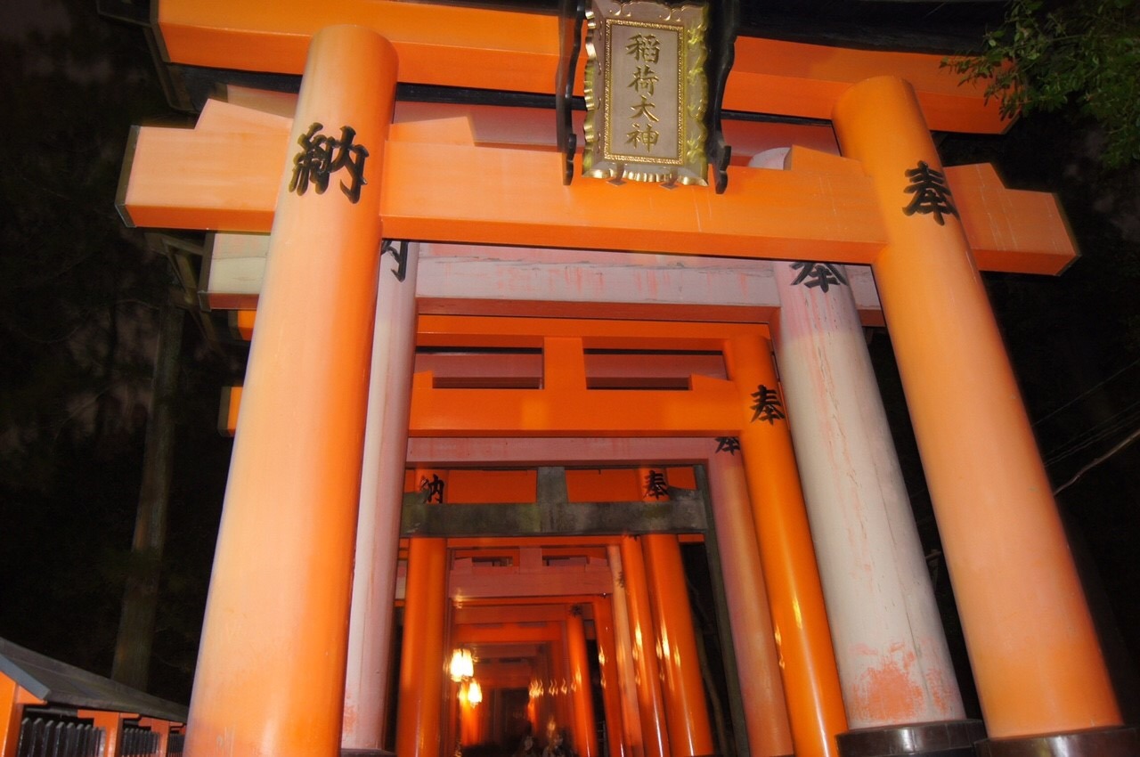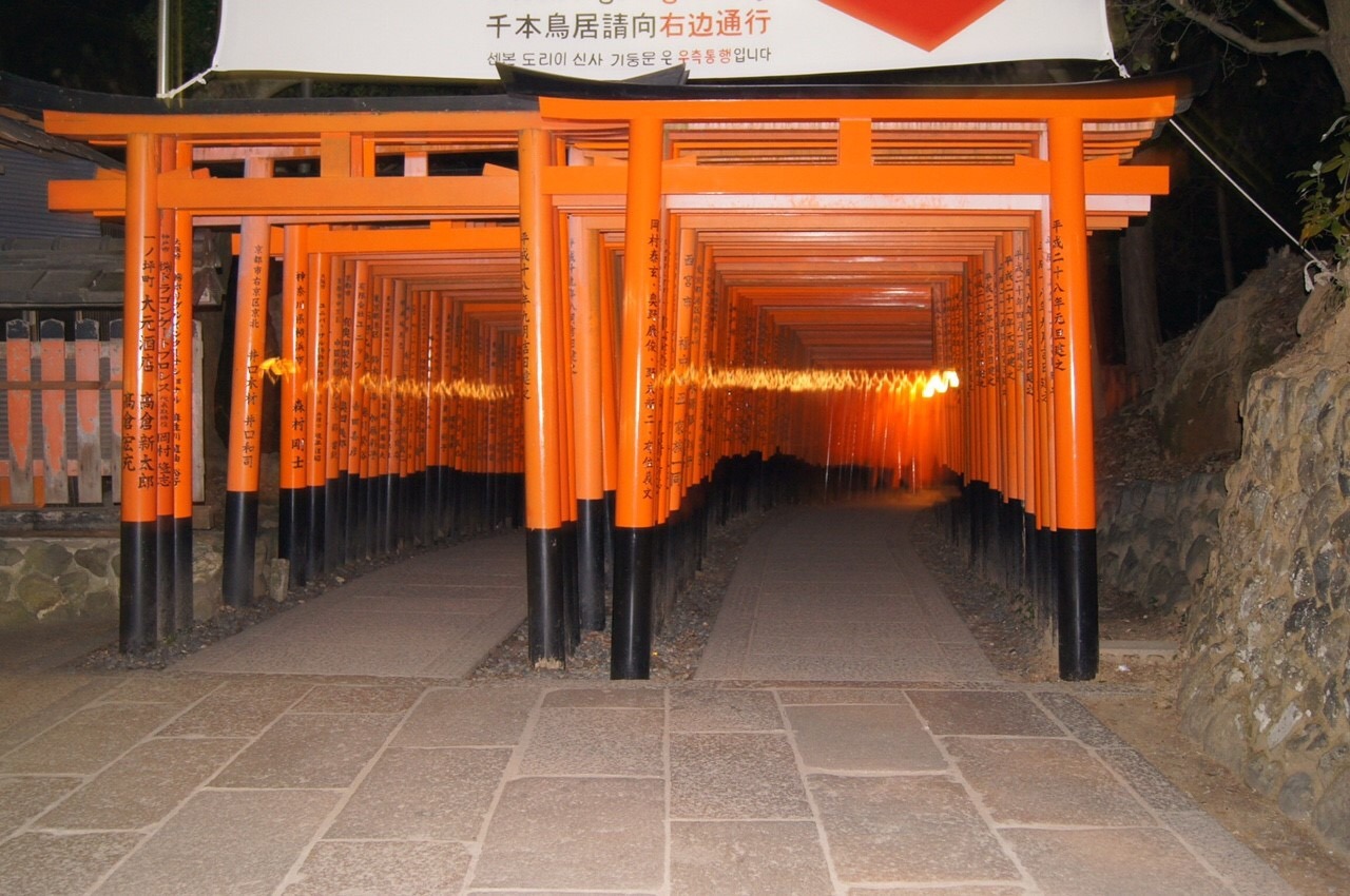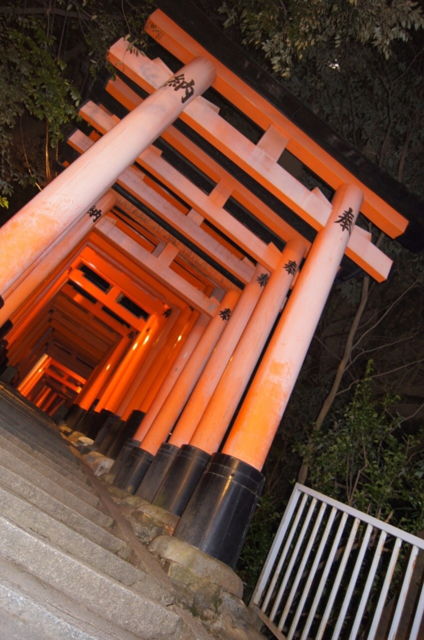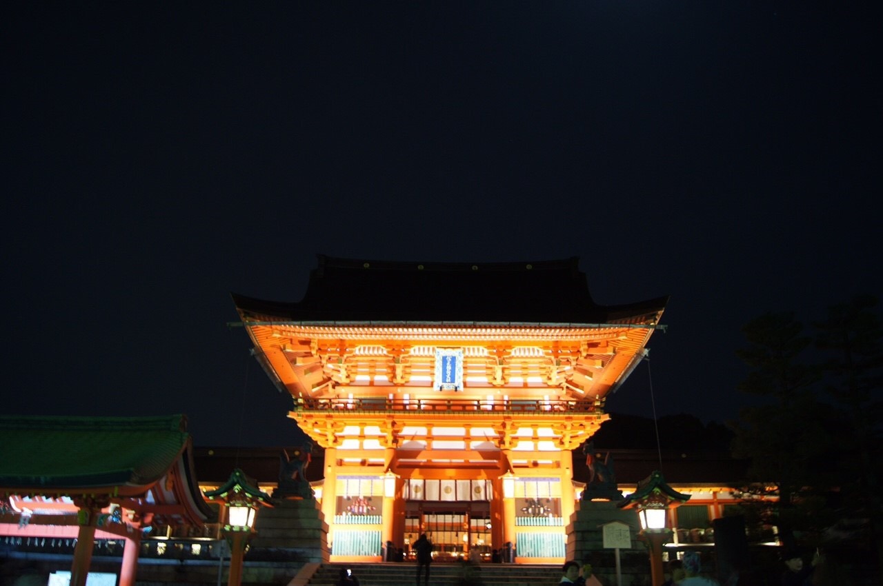 夜ということもあり、人はあんまり居なくて外国人観光客が少しだけいました。鳥居はランプにてらされていて神秘的な感じが凄く素敵です。