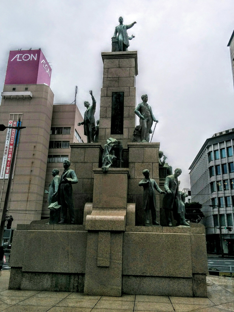 電停真横の東口広場には「若き薩摩の群像」の銅像があります。