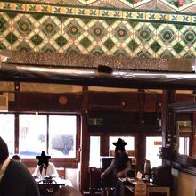 10年程前まではお風呂屋さんだったそうで、そのタイルをそのまま生かした内装。
