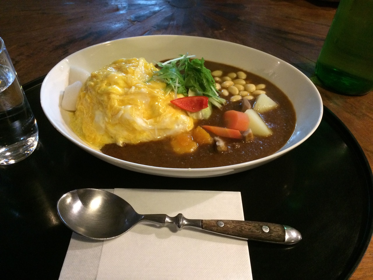 食べたのはばばじカレー!ご飯がスクランブルエッグで覆われ、たっぷりの野菜、ばばじルーがかかっています。