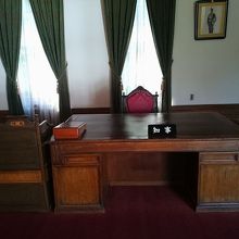 明治村1丁目の正門近くにある建物です。間口が54mと大きく、白い外壁で正面にはベランダが廻らされている洋風な建物ですが、菊花紋章が飾られていたり瓦葺きのせいか和風っぽいような感じの建物です。知事室や応接室、舞踏会が開かれるような部屋などが見学できます。調度品も当時のものが展示されていて、豪華で見ごたえがありました。