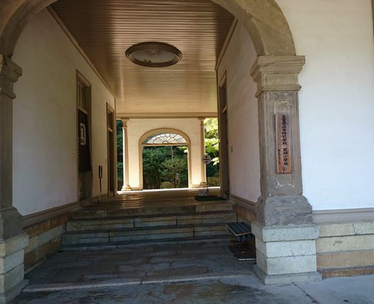 明治村1丁目にある建物です。明治21年に三重県の尋常師範学校本館として建てられた建物で、明治村で保存公開されている三重県庁舎と同じ清水義八の設計です。教室内には可愛らしい小さな木の机といす、そしてオルガンが置いてありました。