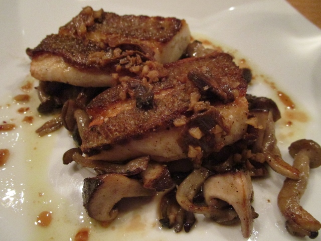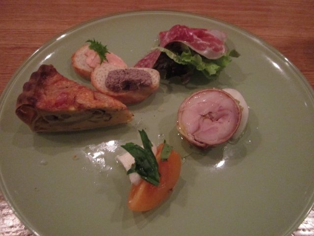 頼んだのは前菜盛り合わせ。白身魚のソテーのきのこソース。