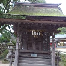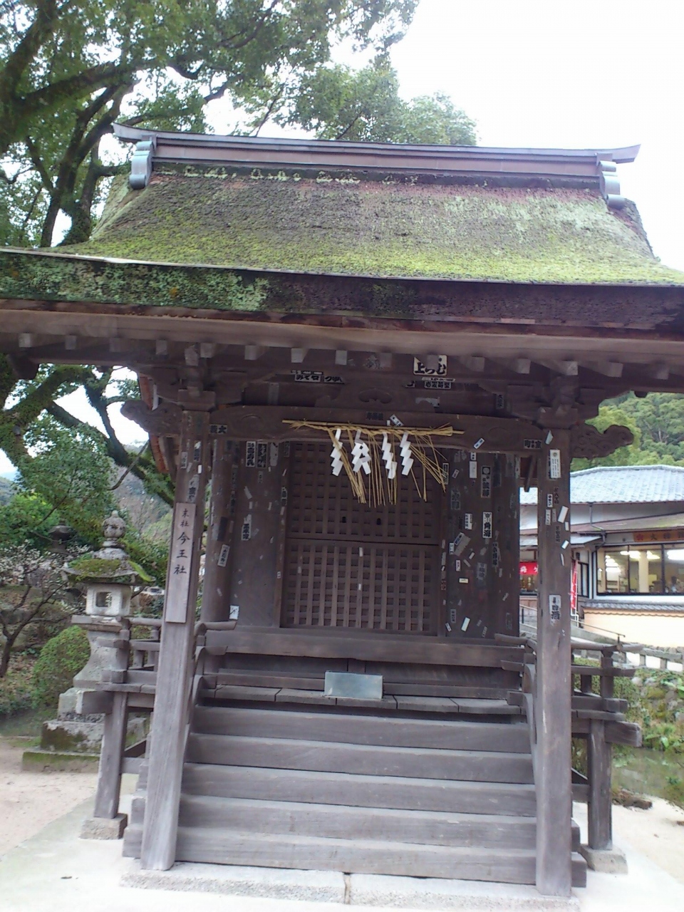 太宰府天満宮の石鳥居をくぐり、心字池に架かる太鼓橋の1つ目を渡った小さな島の右側に小さな社がありました。藩主の代表者などが参詣の途中で穢れに会った場合、境内まで入らないでこの今王社に参詣するのだそうです。