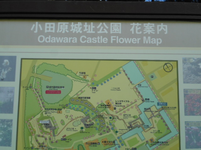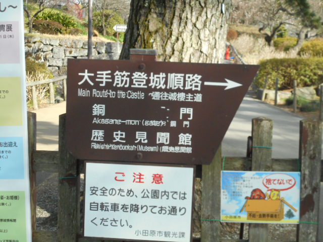 駐車場に停車して、小田原城の見学に行こうと思いましたら、小田原城が工事中でしたので、その前にある公園を散策しました。城の途中までは見物でき、訪れたのが冬でしたが、お濠や、園内の四季の花々が綺麗らしく、春の新緑も清々しいとのことです。