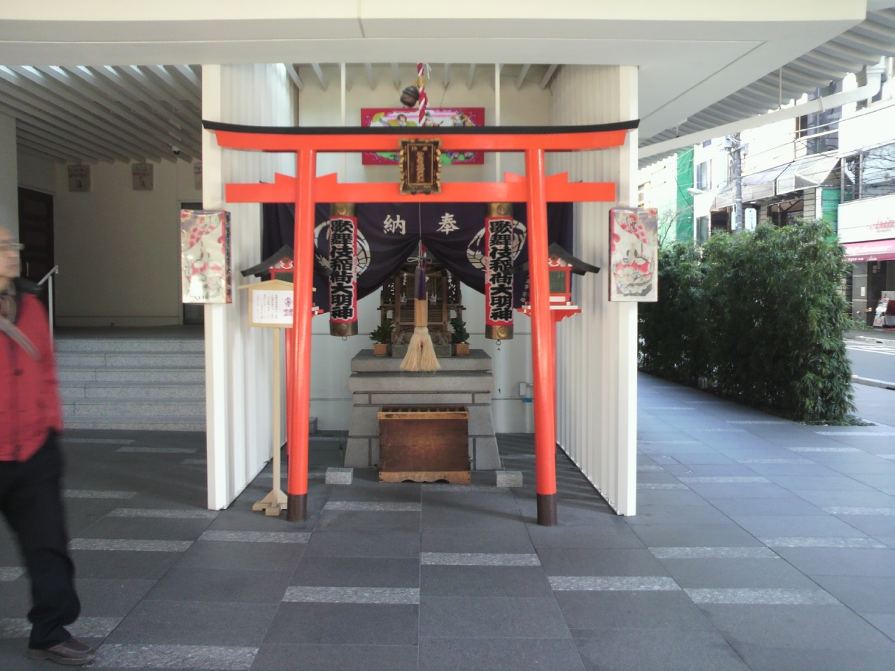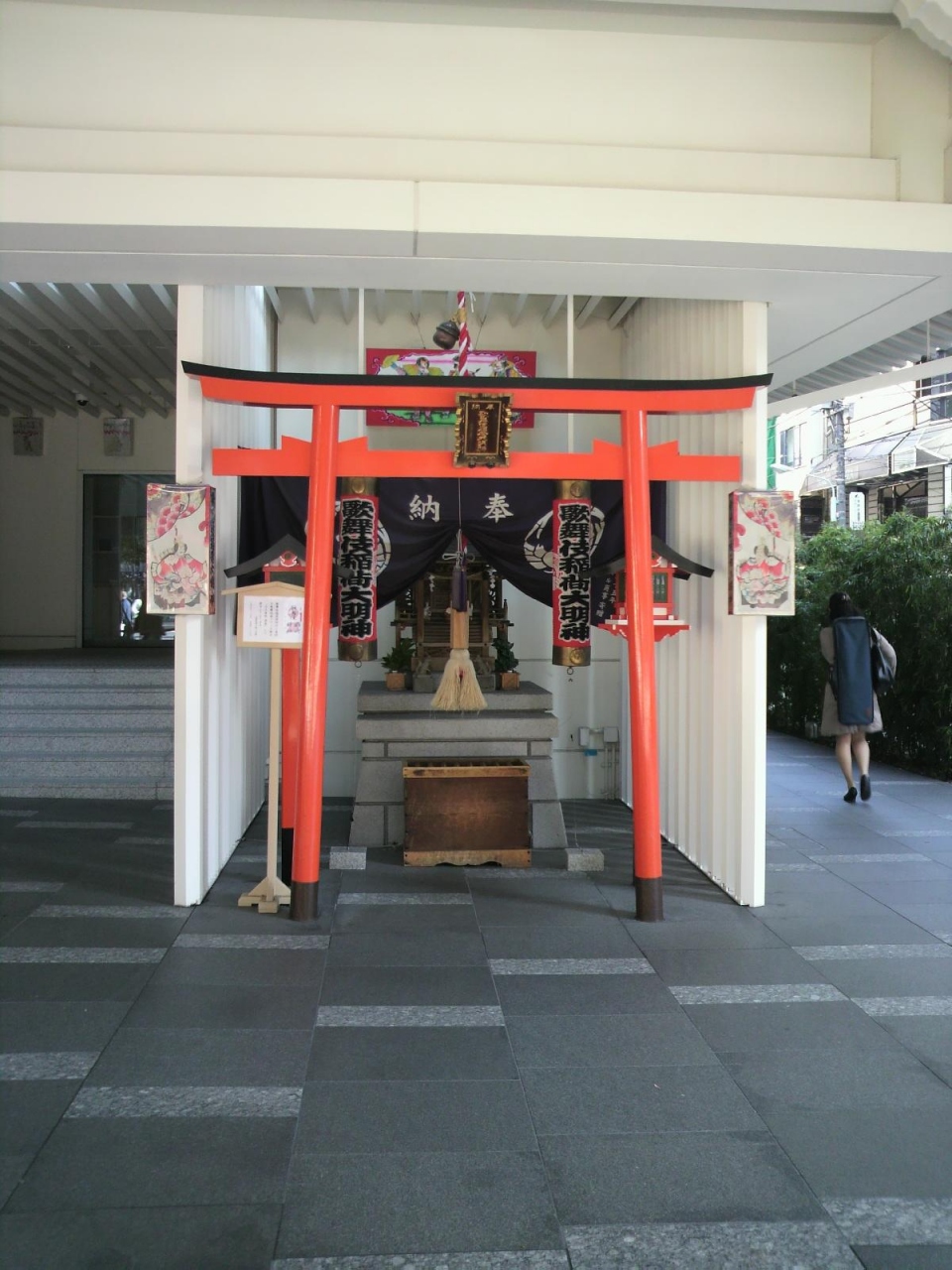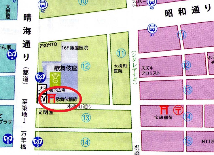 以前は、劇場の内部にあったため歌舞伎座の観客でないと参拝できず、しかも神社の存在は「現地劇場案内図」にしか記されていなかったようですから、“知る人ぞ知る” 神社だったそうです。