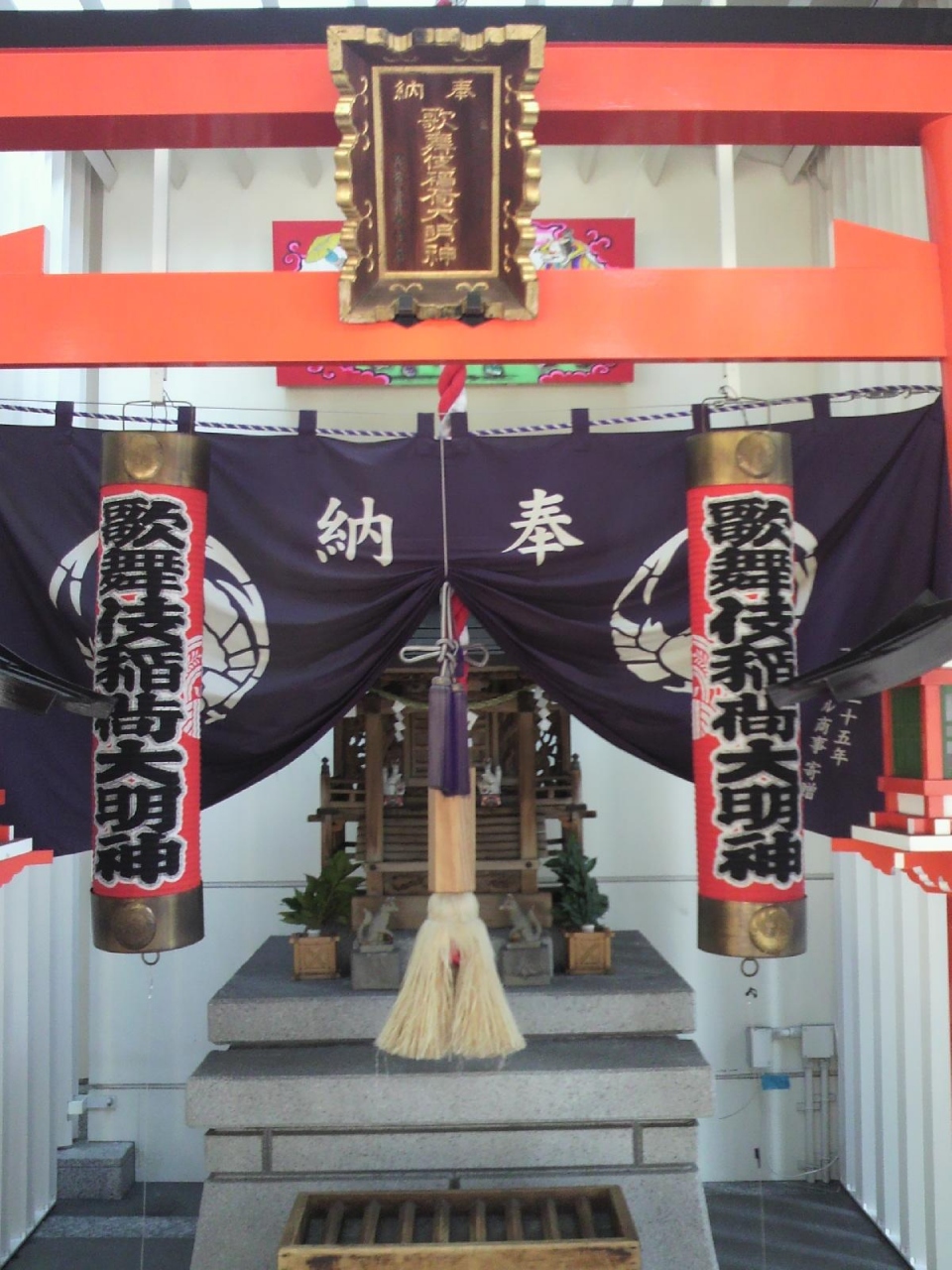 歌舞伎稲荷大明神は、もともとは大入り祈願、安全祈願のために祀られた神社でしたが、2013年の改築に際して、現在の場所に遷座されました。