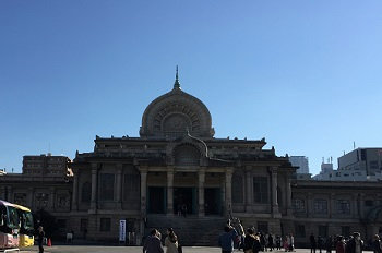 京都の本願寺とは全く違っていて、コンクリート造りの洋風な立派な建物です。門から本殿までの間もひろびろとしていて、近代的な印象です。