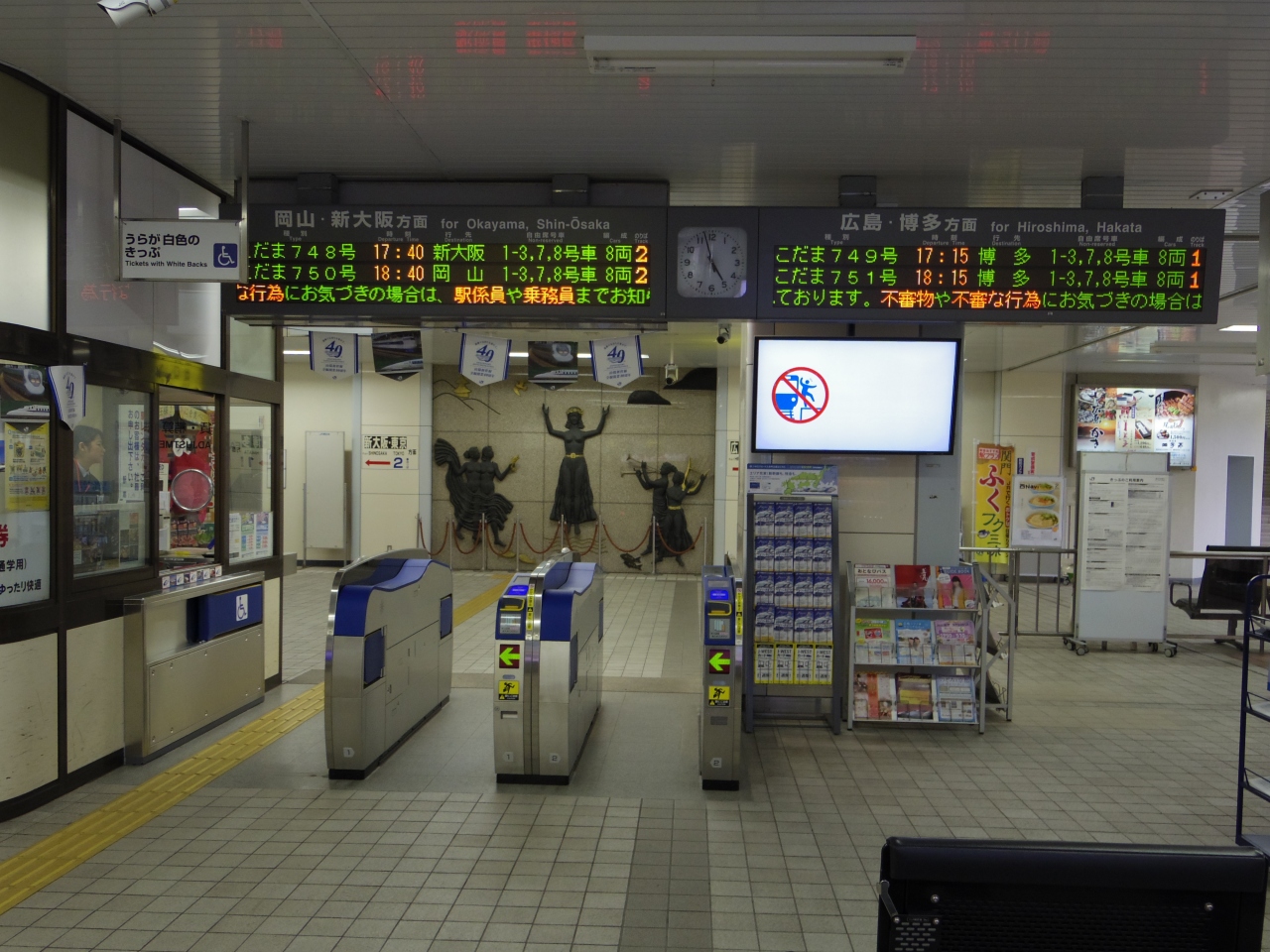 こだまが一時間に1本しか停車しないので、構内もひっそりしていましたが、コーヒーなどの自動販売機のある待合室に、観光客向けのリーフレットなどが何種類も置いてあり、尾道だけでなく、しまなみ海道や今治あたりまでと充実していたのがよかったです。