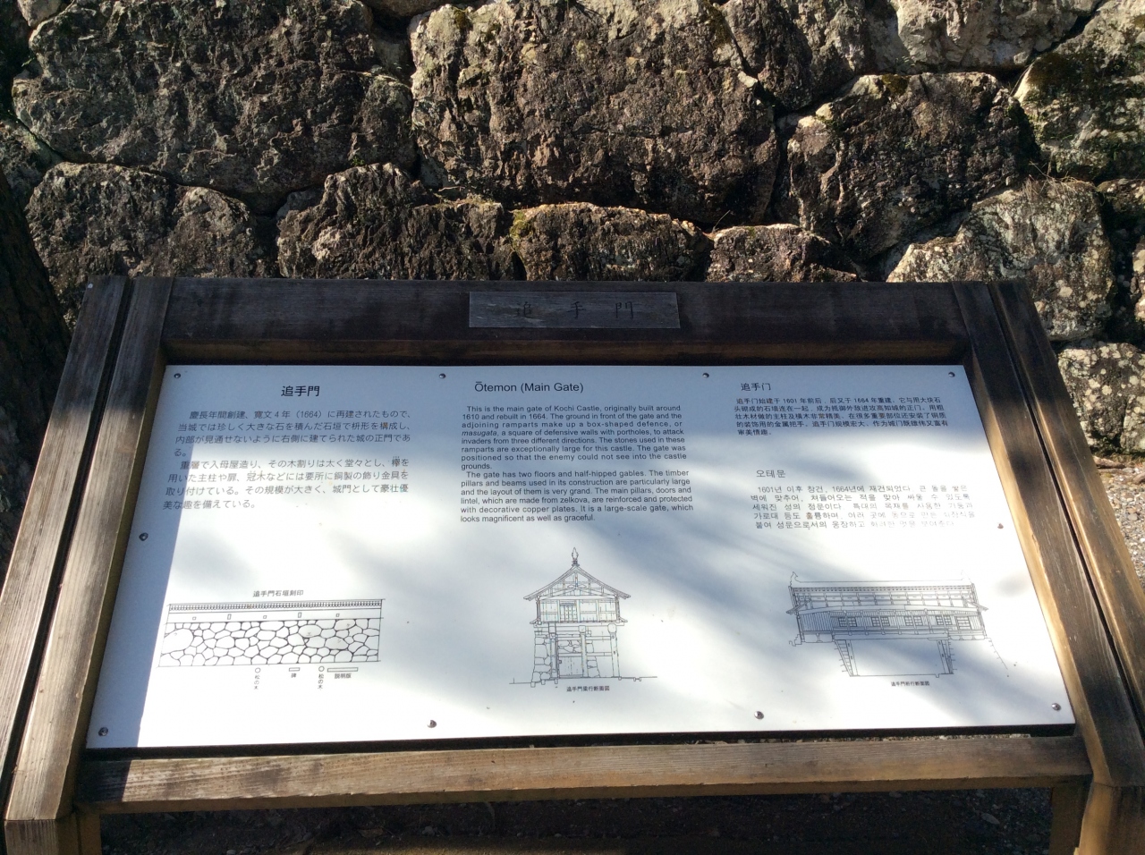 石垣の上に渡櫓を載せた櫓門で、城の大手(正面)にふさわしい堂々たる構えです。