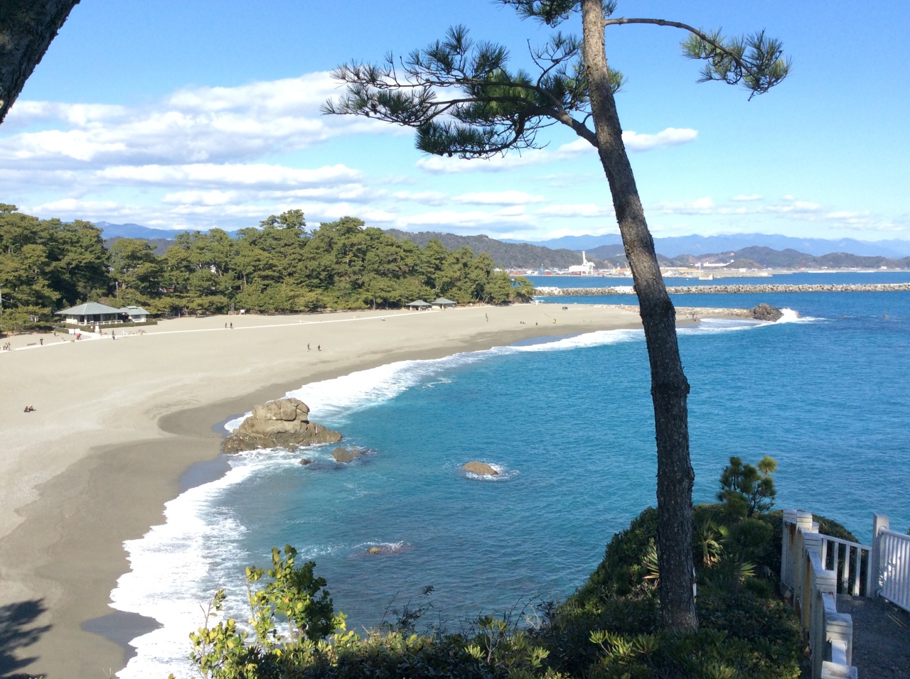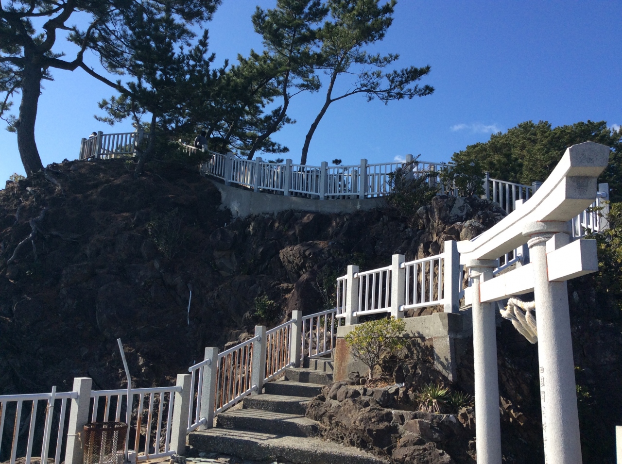 真冬の桂浜、旅の疲れと強風のため、浜を歩いただけで十分だったので、「竜王宮までは行かなくていいや」と思っていたのですが、頑張ってのぼりました。
