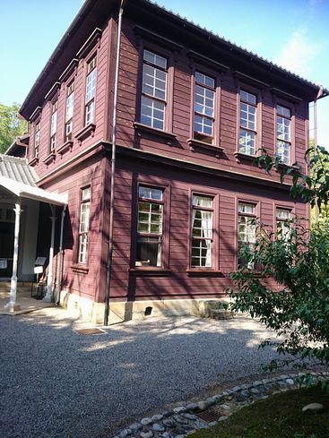 明治村1丁目にあり和館と洋館を接続した、木造2階建ての地味目の建物です。外からの見学です。第十代学習院長の陸軍大将乃木希典(パネル)が、お出迎えしてくれます。