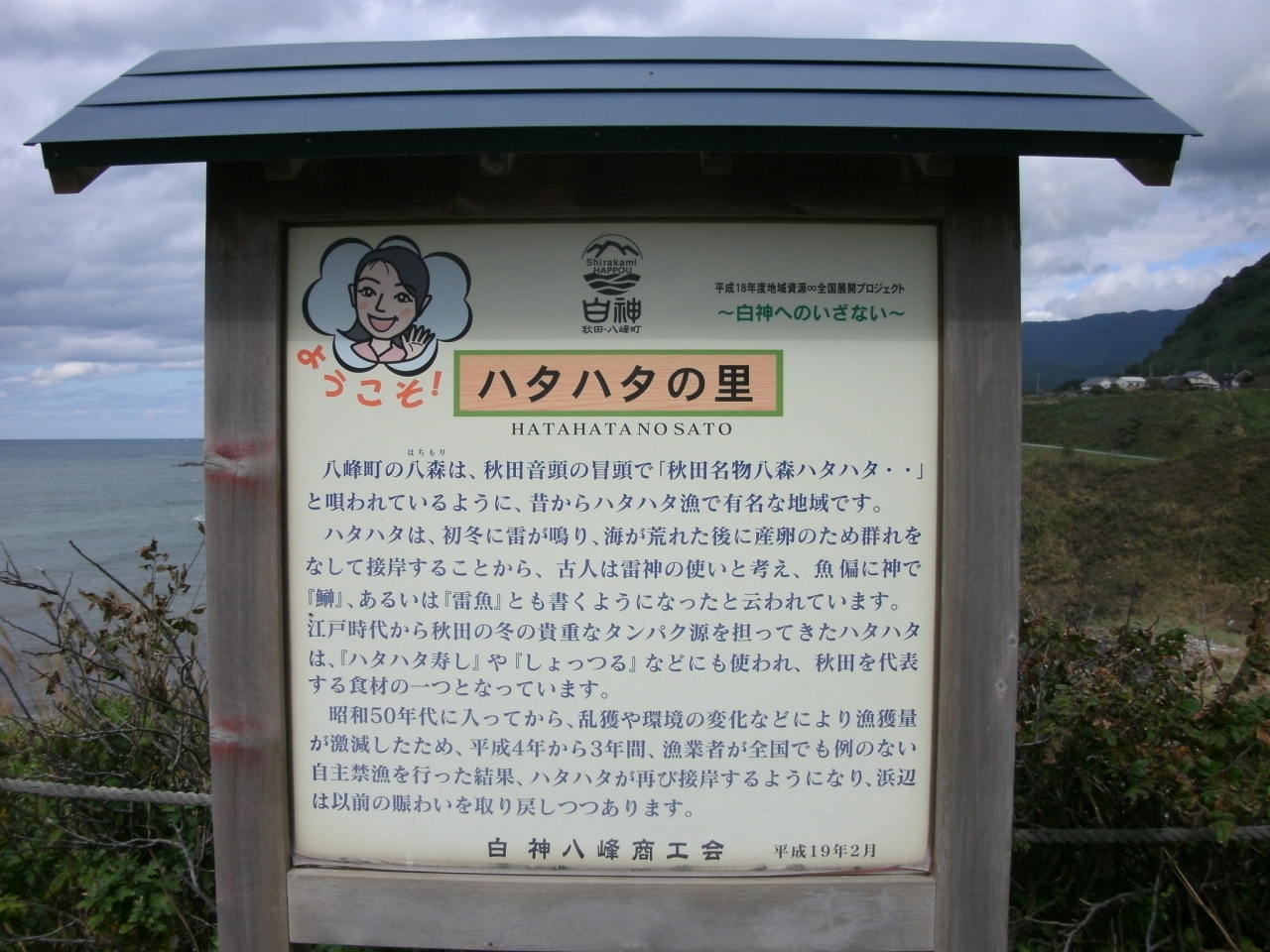 能代市街から国道101号線を北上すること20分ほどのところにあります。訪れたときは天気はもう一つで絶景というわけではありませんでしたが、展望台からは、長い海岸線や男鹿半島、白神山地の山々が見えました。駐車場もあるので休憩するのにはいいところです。