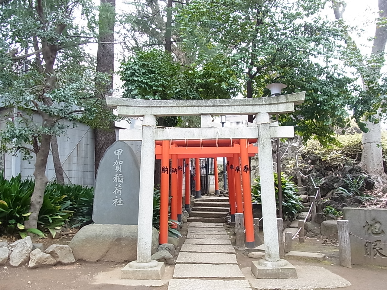 JR千駄ヶ谷駅から徒歩5分くらい。鳩森八幡神社境内に甲賀稲荷神社があります。もともとは青山権田原にあった甲賀衆の鉄砲演習場に建立されていたそうですが、明治になって青山練兵場を作る際、鳩森八幡神社境内に遷座されたとの事。境内には、他に富士塚や能舞台などの見どころもあります。