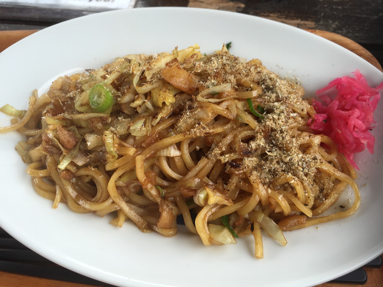 横丁には何軒かお店が立ち並び、その中であちこちのお店で購入して、外のベンチで飲食することができます。
