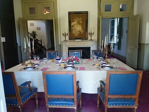 明治村1丁目にある木造総二階建銅板葺の建物です。水色の外壁にアーチ状に張り出したバルコニーがおしゃれな洋館です。調度品も当時のものでしょうか、かなり贅を尽くしています。時間が合えば、学芸スタッフさんの説明を聞きながらの見学をお勧めします。
