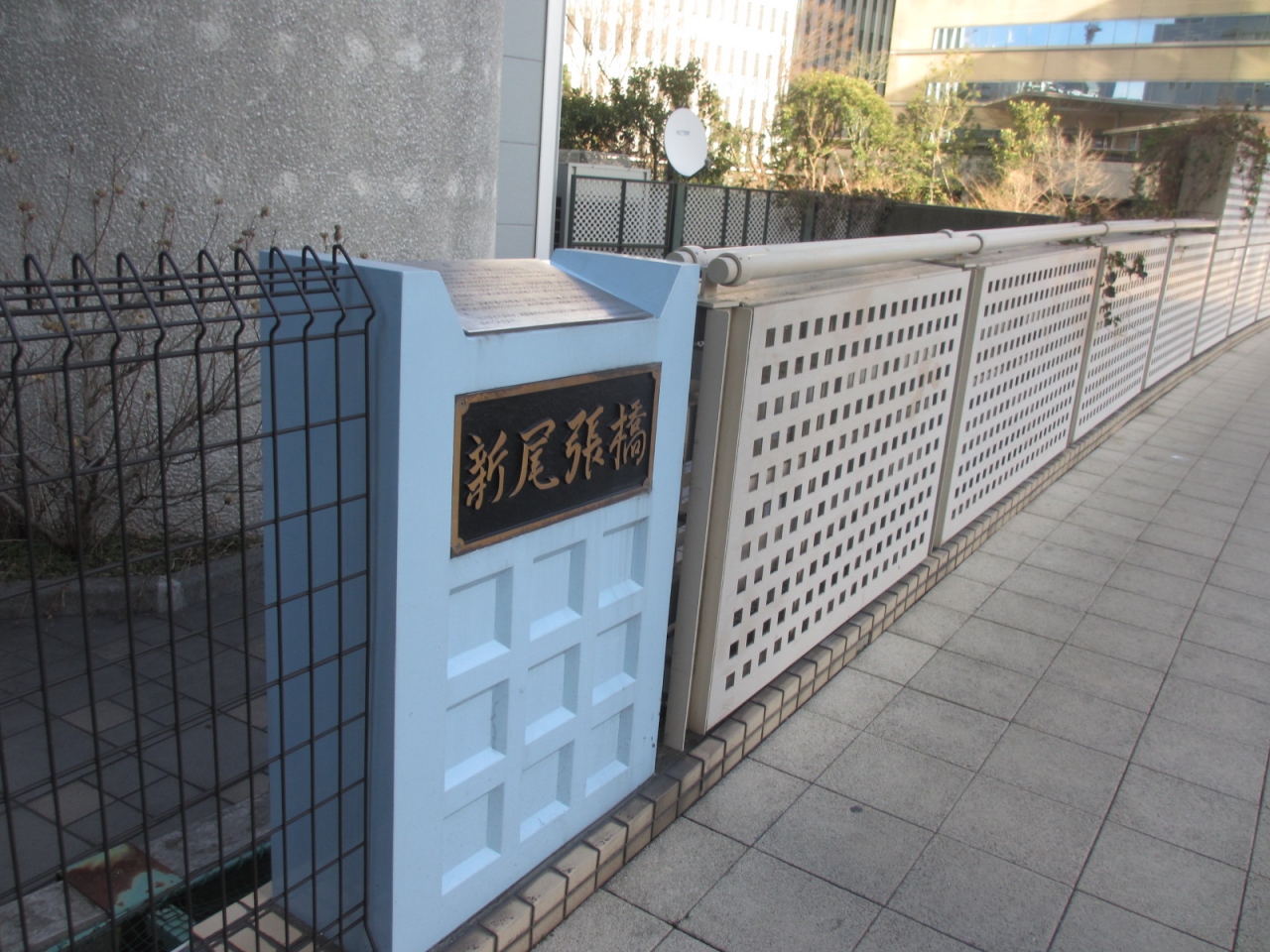 首都高速道路に架かる橋で築地5丁目にあります。このあたりは江戸時代に尾張徳川家の築地下屋敷があった場所だそうで、この地点から下流100メートルに江戸時代初期から昭和40年はじめまで尾張橋という橋があり、その名を残すために新尾張橋という名前になったそうです。橋自体にはこれといった特徴はなかったです。