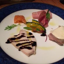 前菜、スープ、パスタorリゾット、メイン、パン、デザート、コーヒーでした。