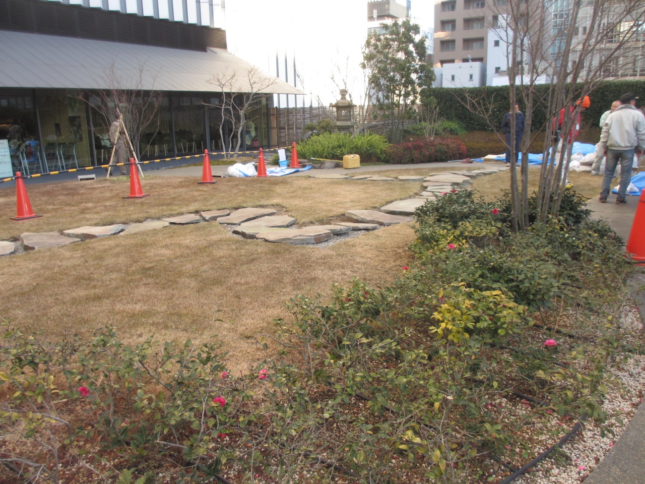 歌舞伎座の屋上にあります。歌舞伎公演のチケットを持っていなくても、歌舞伎座タワーというビルのエレベータで5階に上がれば、誰でも無料で庭園に行くことができます。新しいせいか味わいがあるという雰囲気は残念ながら感じることはできませんでした。