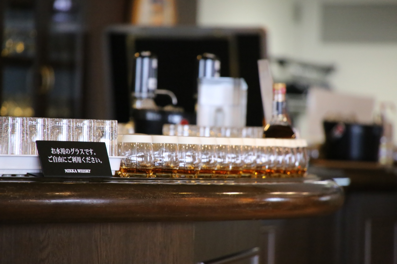 試飲場所で飲むウィスキーが格別。アップルラインも美味しい!