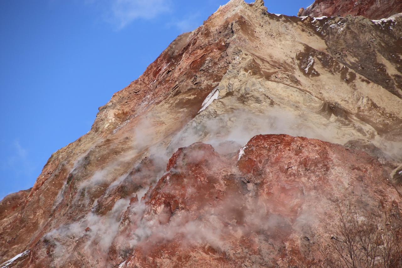 今も活動中!?蒸気が立ち上る火山。