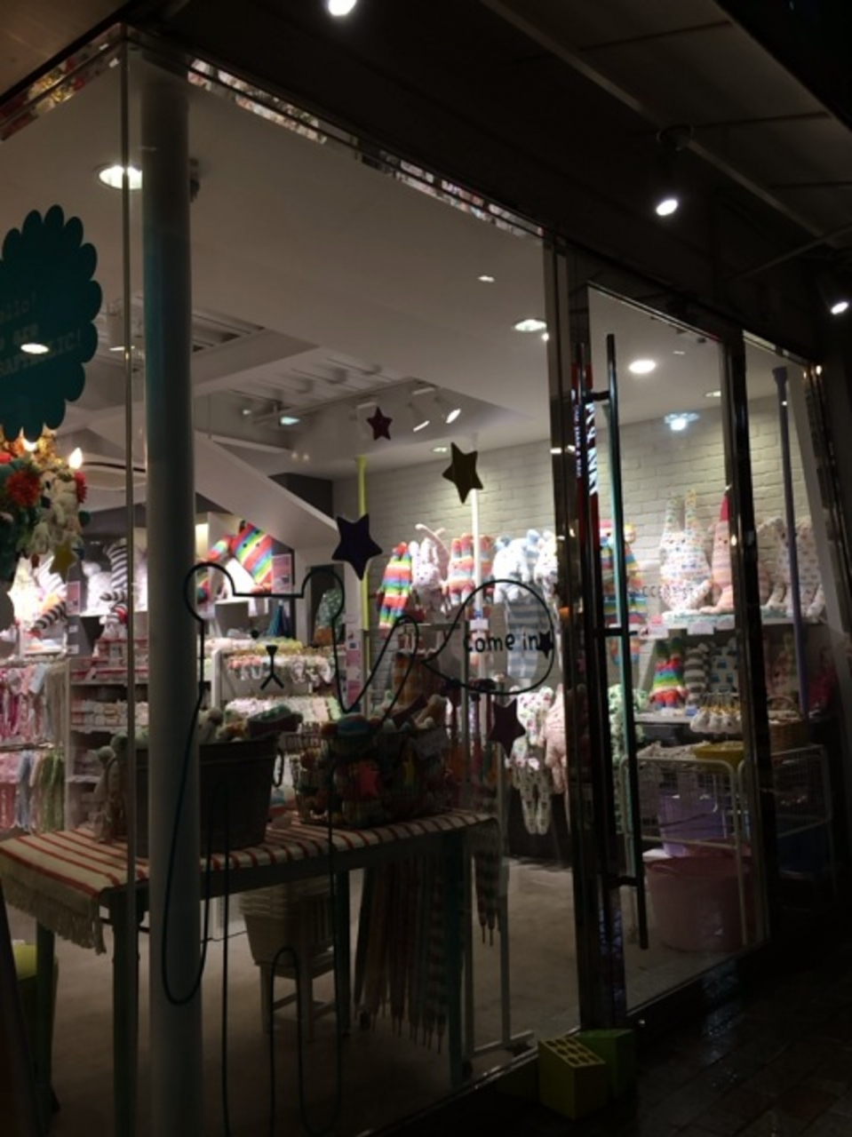 自由が丘駅から熊野神社方面に徒歩5分ほど歩いたところにある雑貨屋さんです。このキャラクターは最近見かけるようになりました。店内には雑貨や文房具、部屋に置くクッションなども売っていて、色々なものが揃います。
