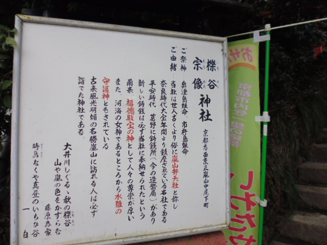 渡月橋から山のほうに少し向かうとモンキーパークの看板があってそこのわきに小さくあるのがこの神社です。