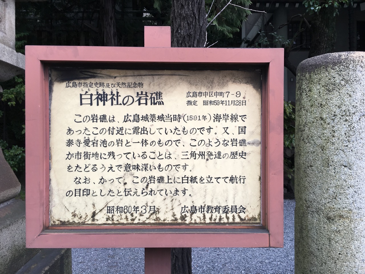 ここは広島城築城当時は海岸線だったそうで、境内に残る岩礁も見ることができました。