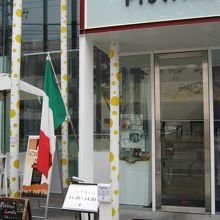 イタリアの国旗が掲げられていて、おしゃれでかわいい外観です。