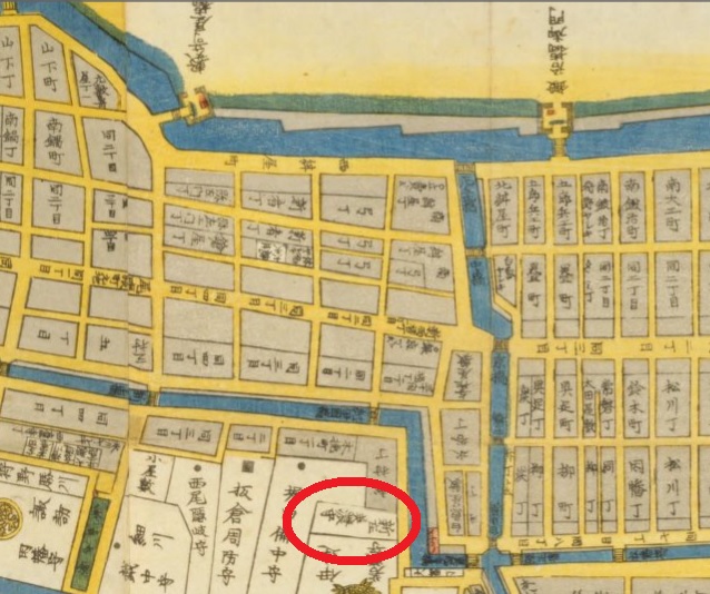 安平神社は、昭和通りと高速道路(昔の築地川)の間にあります。